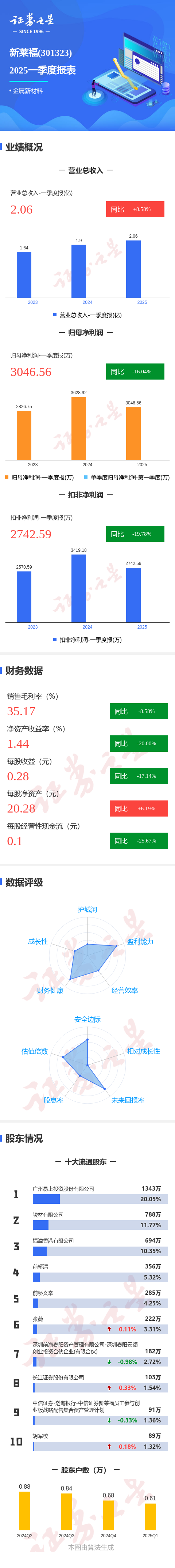 图解新莱福一季报: 第一季度单季净利润同比减16.05%